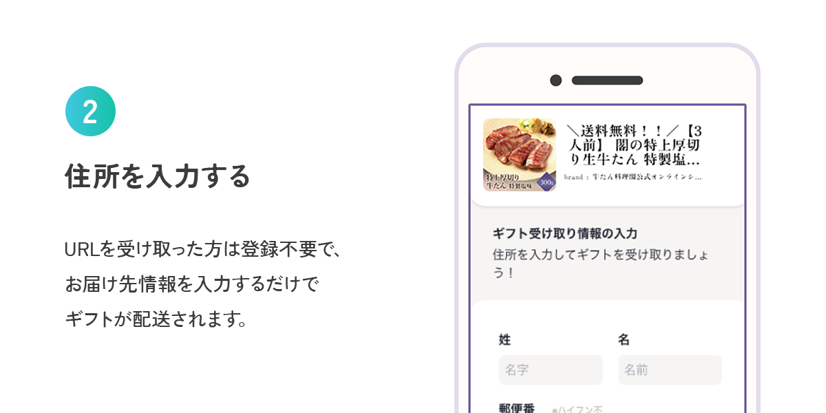 購入した日から5日後の23:59までに贈り先様へURLを送付し、そのURLからお届け先情報をご入力いただく必要があります。